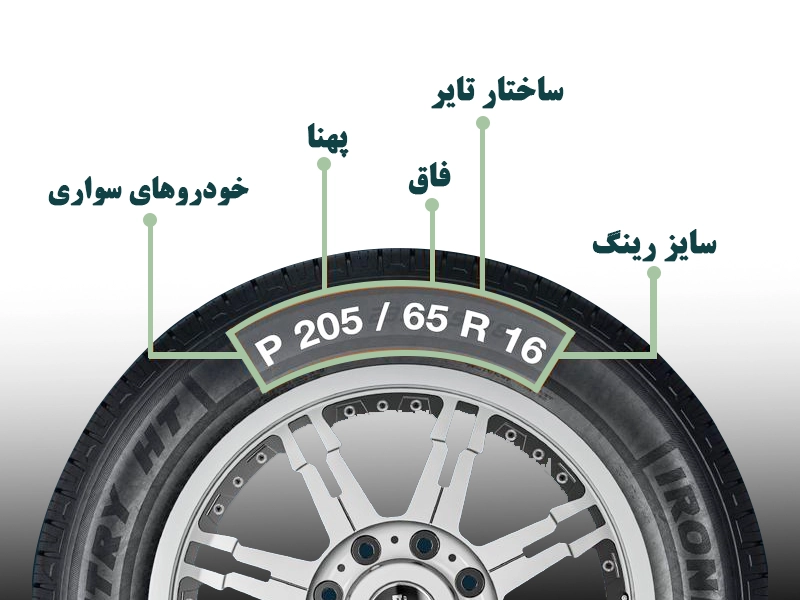 به عنوان مثال، عدد 205/55R16که معمولاً روی لاستیکها دیده میشود، نشاندهنده پهنای ۲۰۵ میلیمتر، ارتفاع دیواره معادل ۵۵ درصد پهنا، ساختار رادیال(R) و قطر رینگ ۱۶ اینچ است. در ادامه اعداد و حروفی قرار می گیرند که شاخص وزن قابل تحمل و حداکثر سرعت مجاز برای این لاستیک را نشان می دهند. و بیانگر حداکثر سرعت مجاز و حداکثر میزان باری که می تواند لاستیک تحمل کند است. این اعداد باید با مشخصات فنی خودرو و توصیههای دفترچه راهنمای آن هماهنگ باشند.
